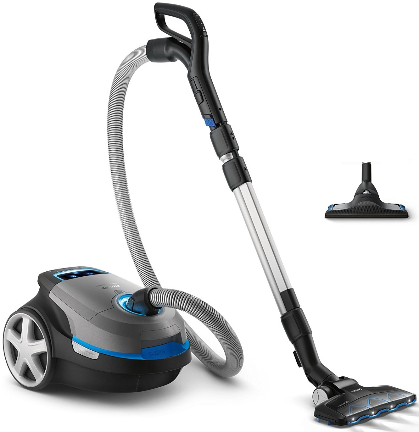 Speciální funkce:Technologie AirflowMax, TriActive LED, CarpetClean, automatické zapnutí / vypnutí, držák dálkového ovladače, integrované příslušenství