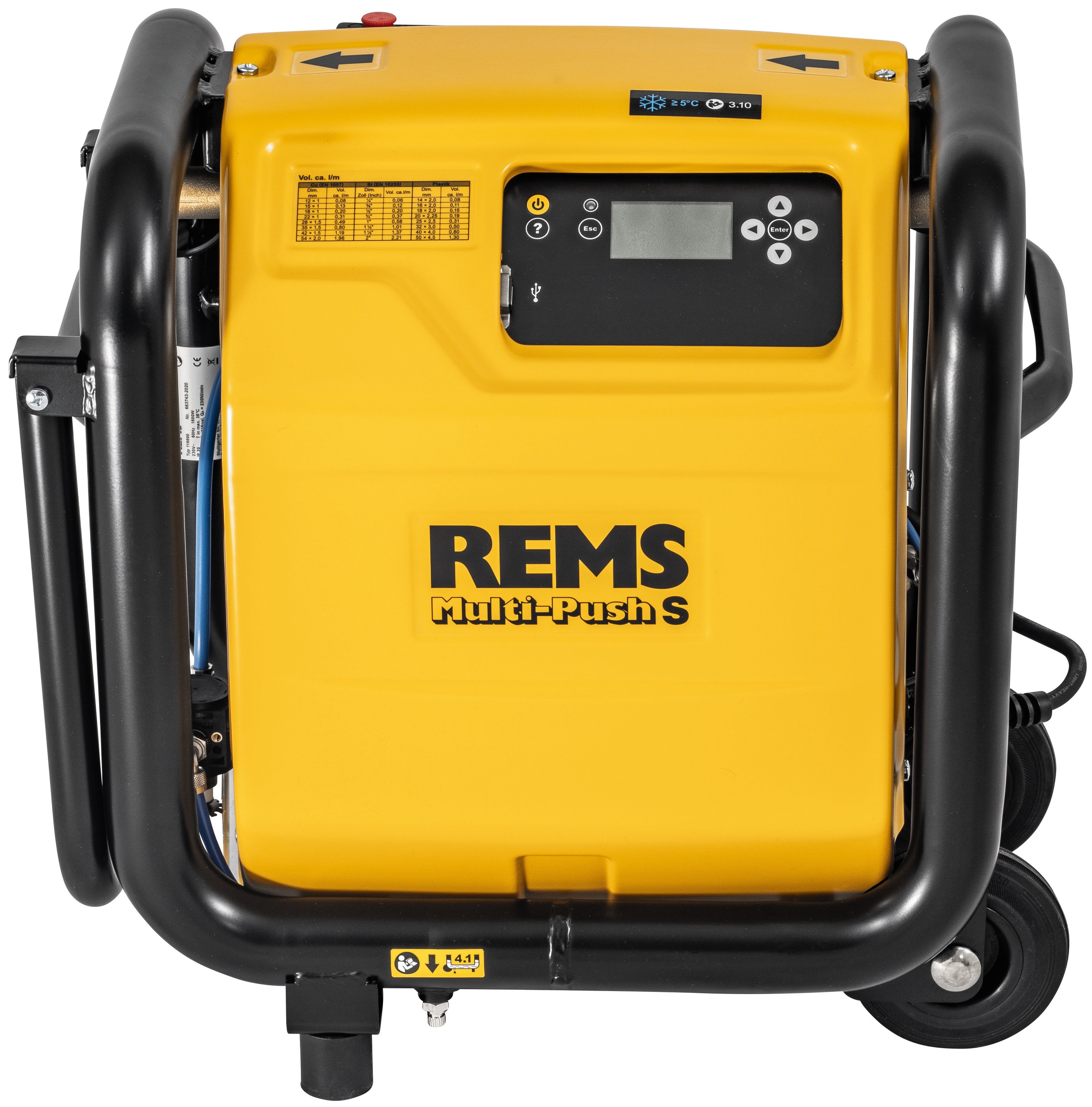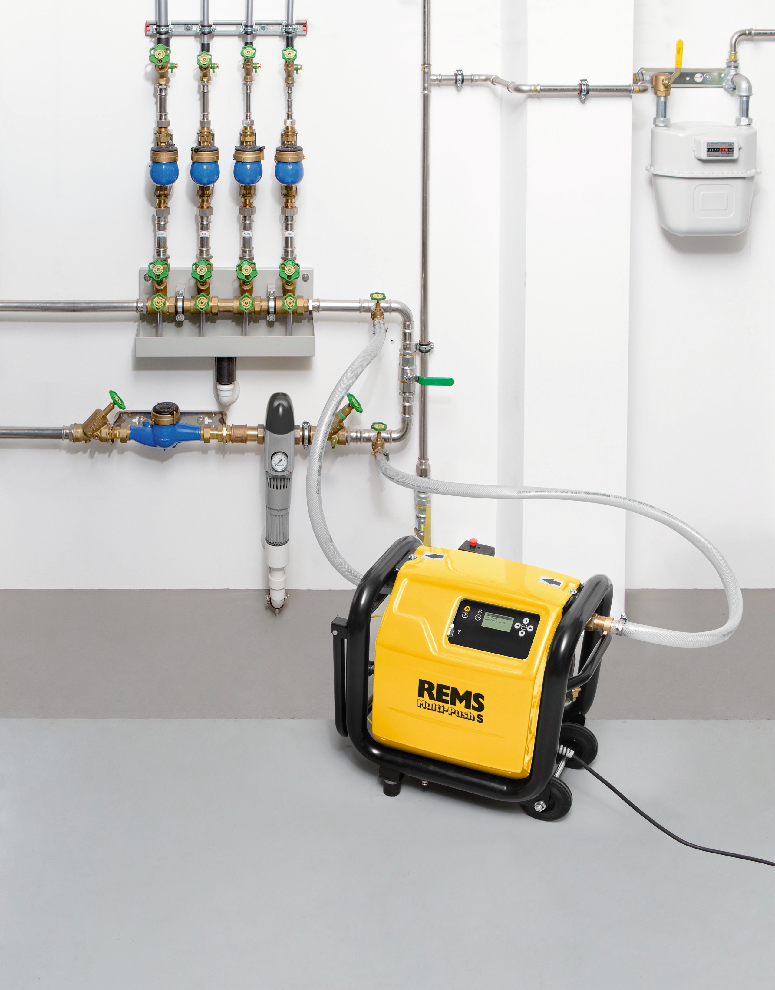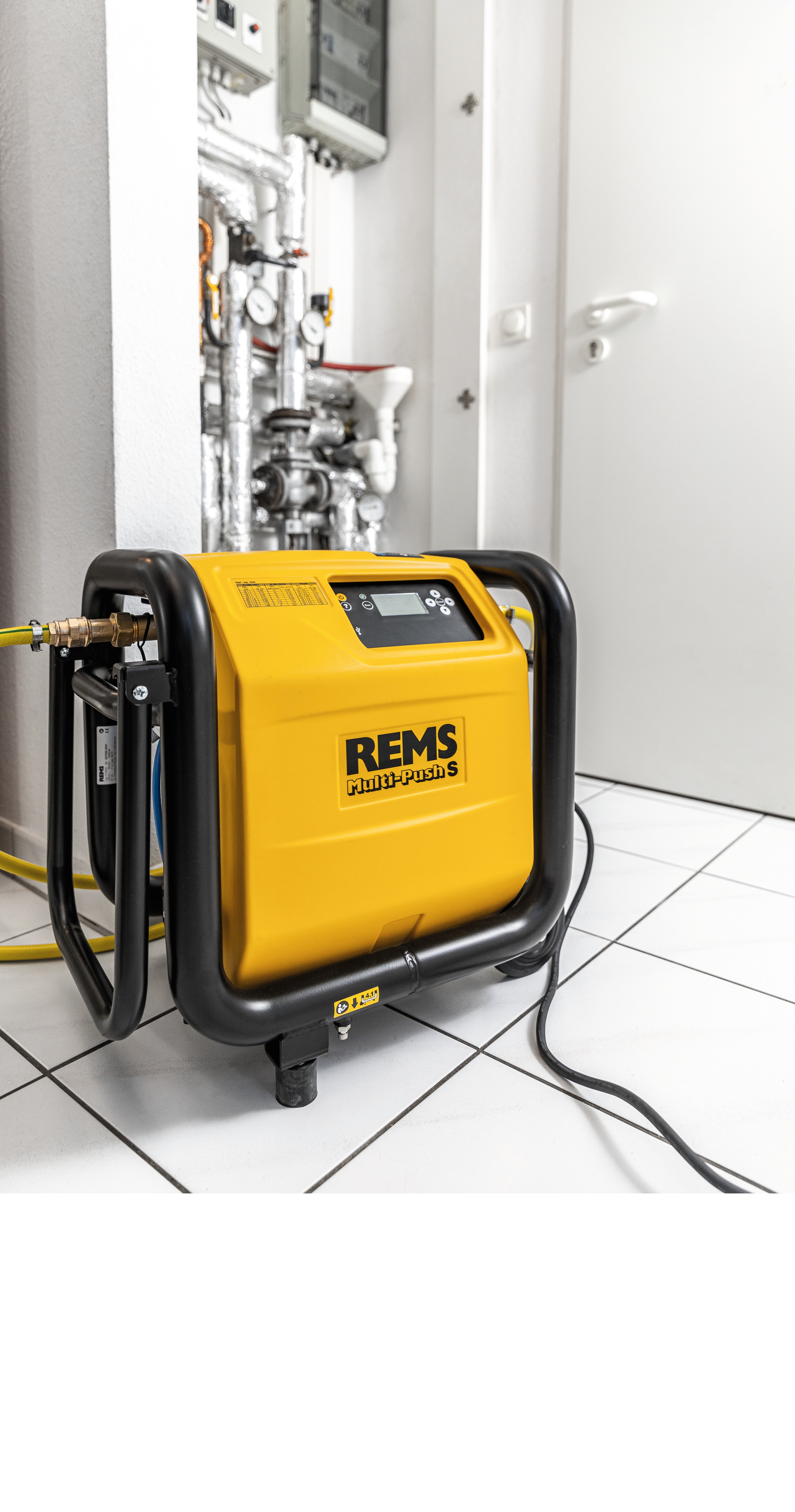 REMS Multi-Push S Set je výkonná elektronická proplachovací a odkalovací jednotka s bezolejovým kompresorem, určená pro profesionální proplachování, odkalování, dezinfekci, čištění a konzervaci potrubních systémů. Využívá se při údržbě topných soustav, radiátorů, plošného vytápění i rozvodů pitné vody a současně umožňuje provoz pneumatického nářadí. Přístroj splňuje požadavky normy EN 806-4 a nabízí plně řízený proces s možností protokolování.