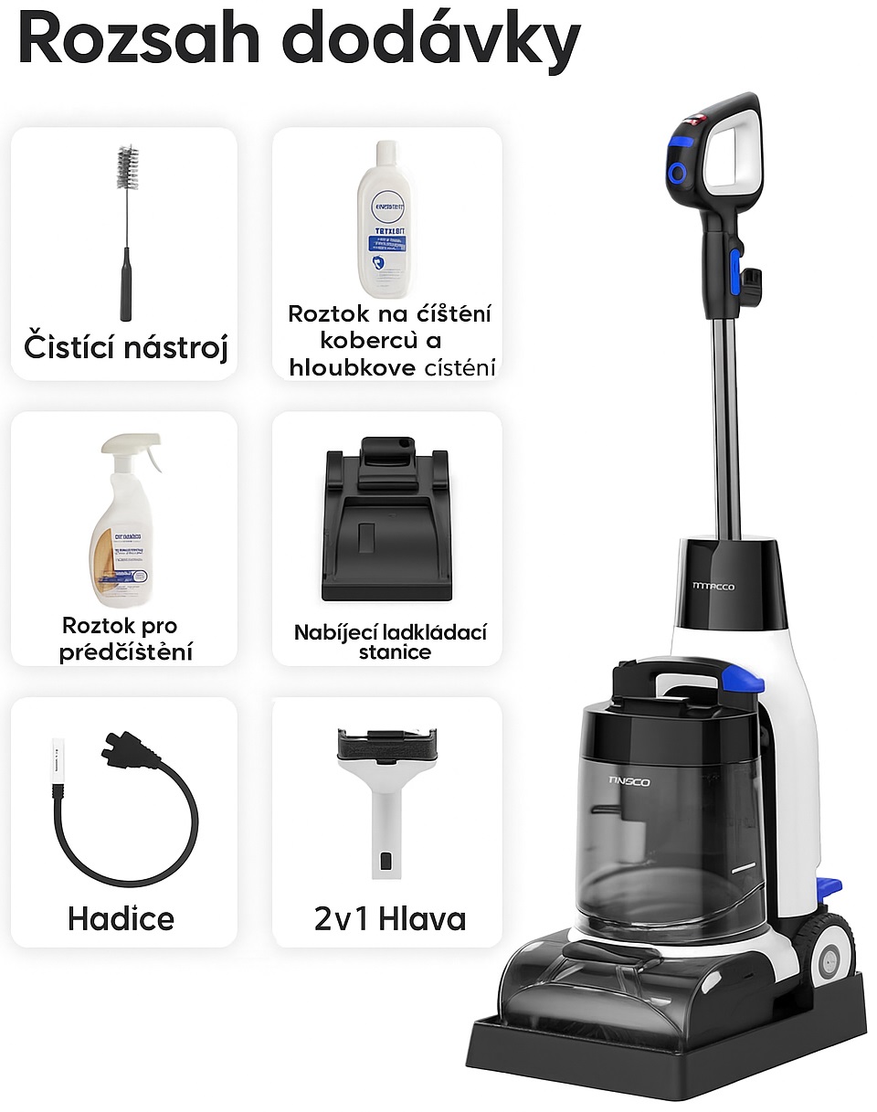 Součástí sada na čištění čalounění a těžko přístupných míst