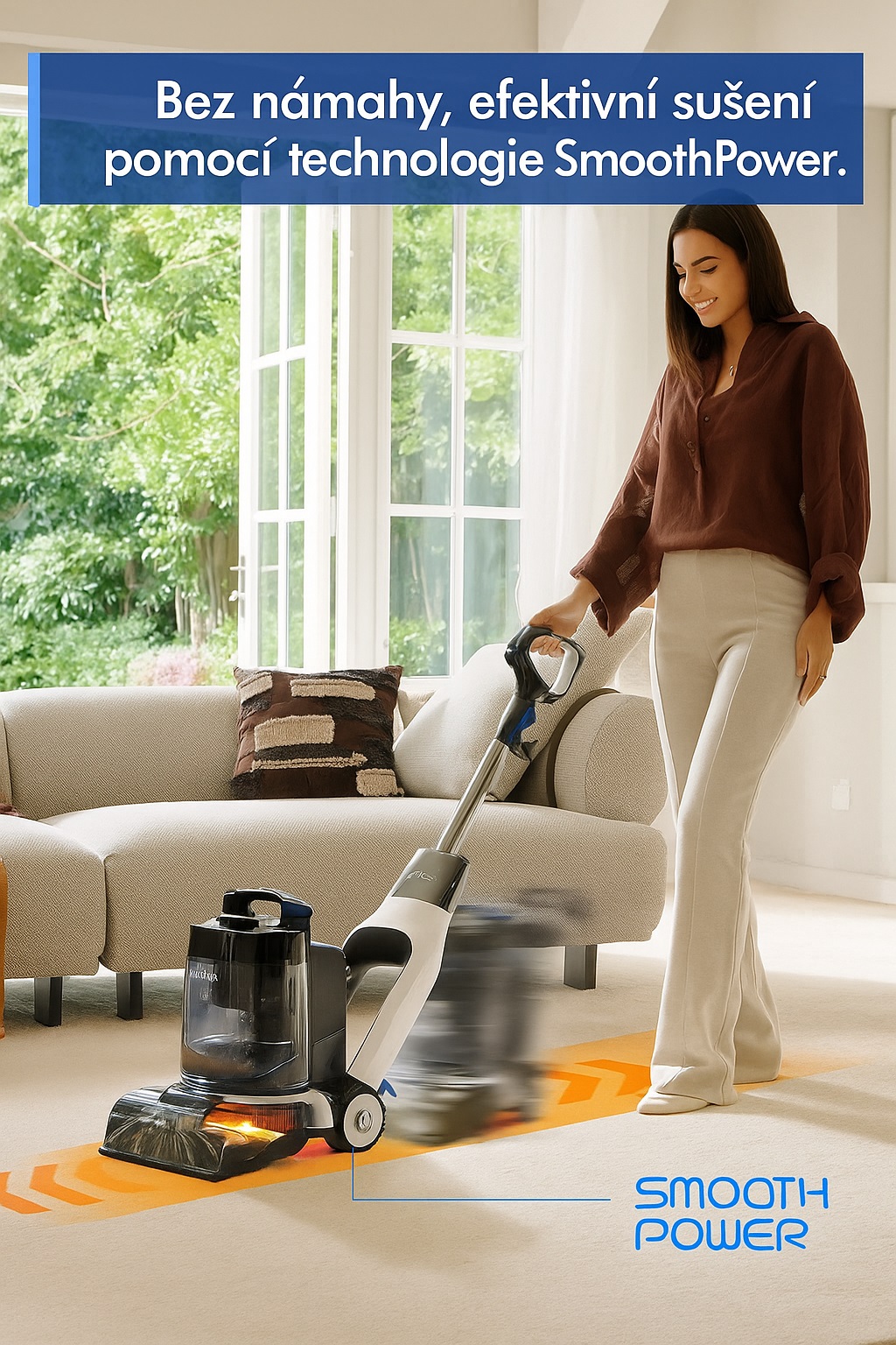 3stupňový systém SmoothPower pro snadné čištění různých typů koberců