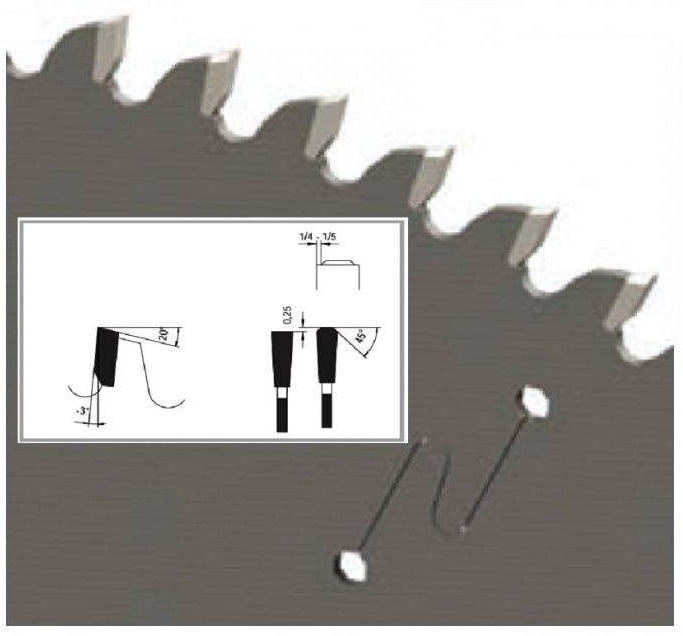 Geometrie zubu: TFZ N – střídavé trapézové zuby s rovným zubem (FT), negativní úhel čela.