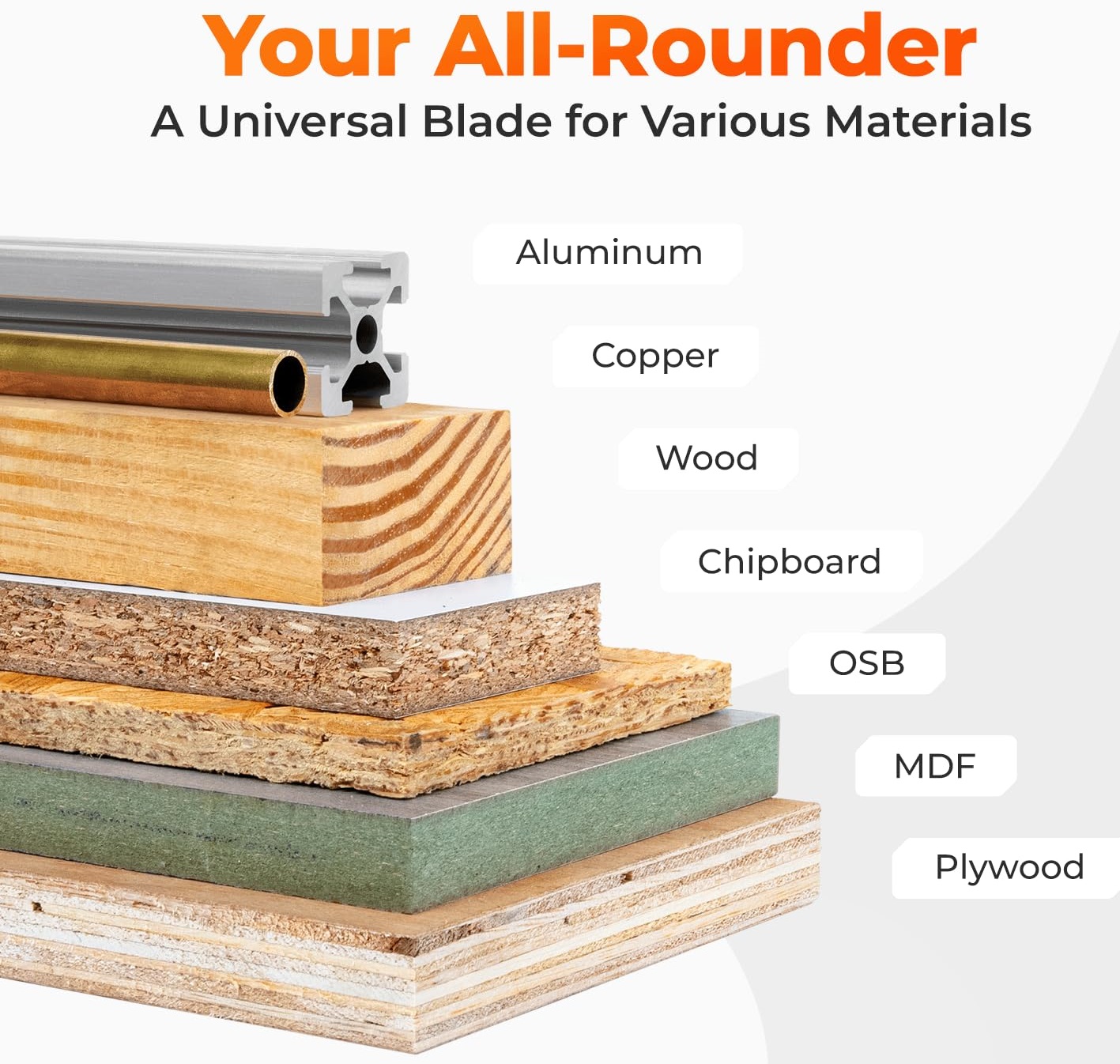 Univerzální použití pro dřevo, hliník, plast, vícevrstvé materiály a měkké kovy