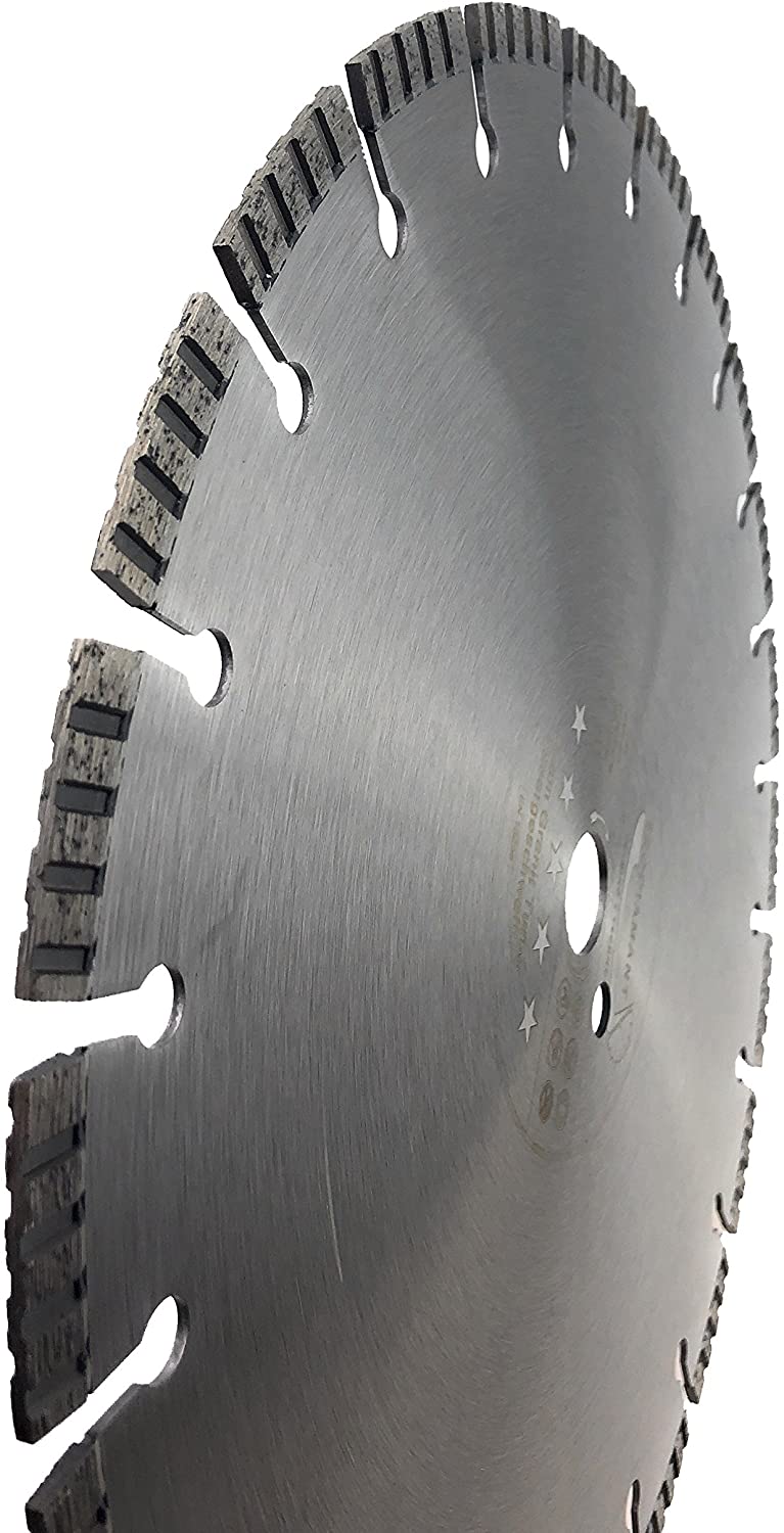350mm diamantový kotouč s 20 mm otvorem, 10 mm laserem svařovaným velmi robustním turbo segmentem, vhodný pro řezací stroje, benzínové řezačky, stroje na řezání kamene, vodní pily, podlahové pily všech značek, vhodné i pro Stihl