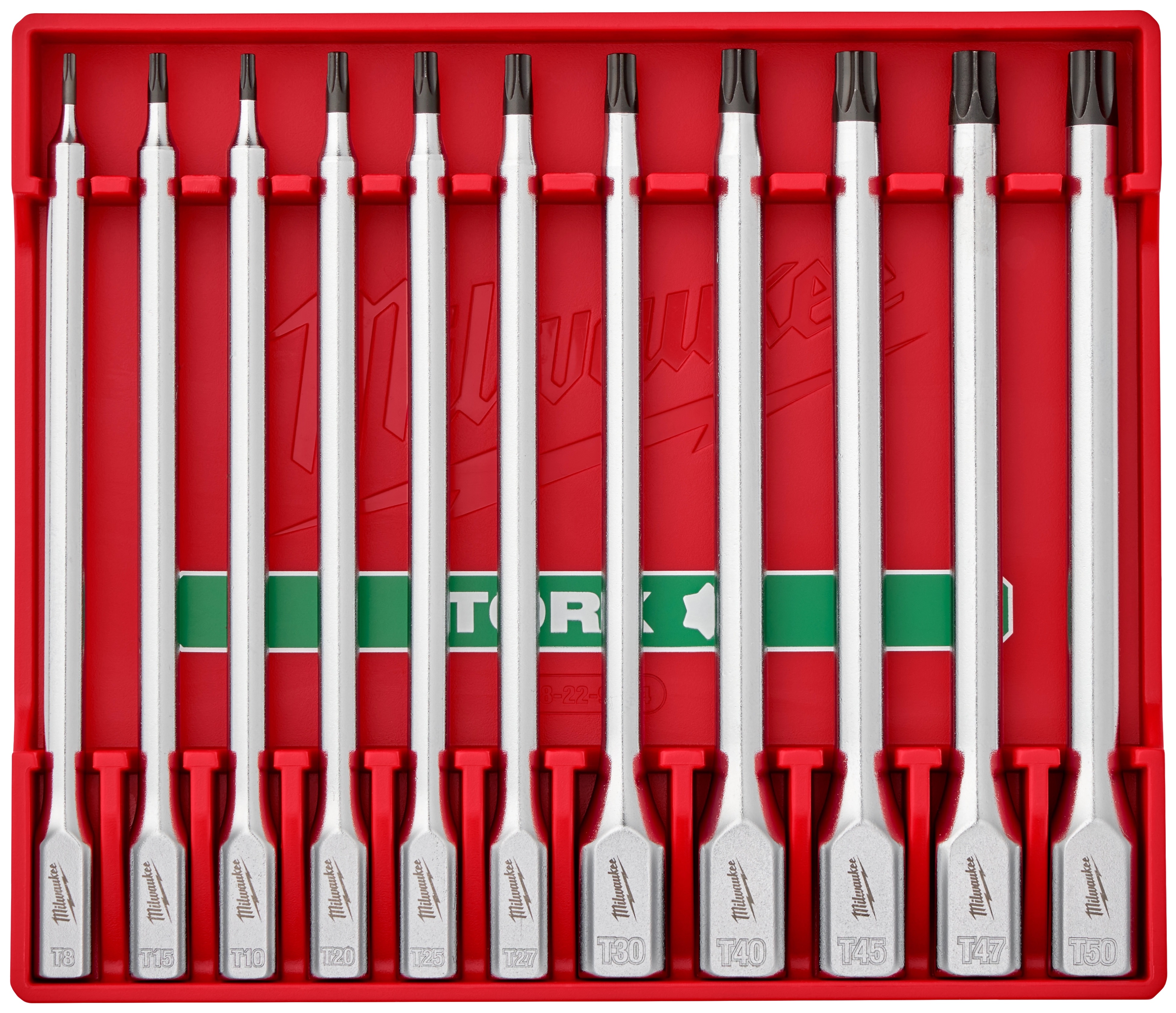 Profesionální sada prodloužených hlavic s bity Torx Milwaukee je určena pro práci v těžko přístupných místech