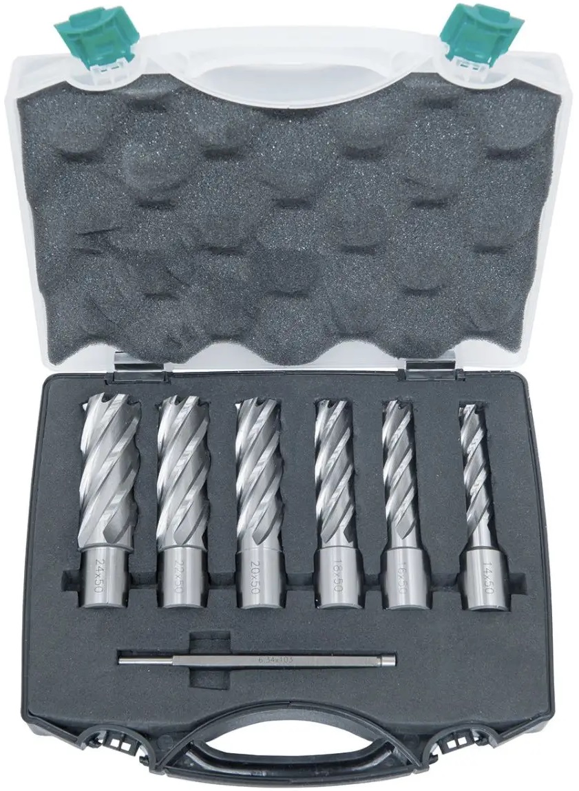 Profesionální sada jádrových vrtáků Bernardo z rychlořezné oceli HSS je určena pro přesné a efektivní vrtání do kovových materiálů
