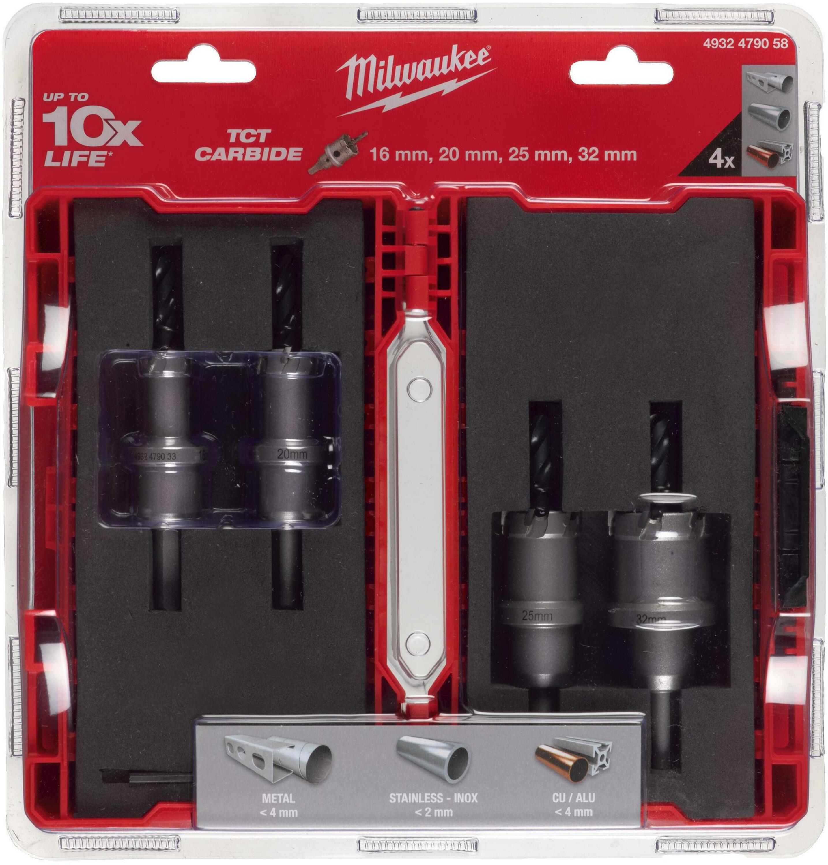 Milwaukee karbidové kruhové pilky Ø 16–32 mm, sada 4 ks, 4932479058