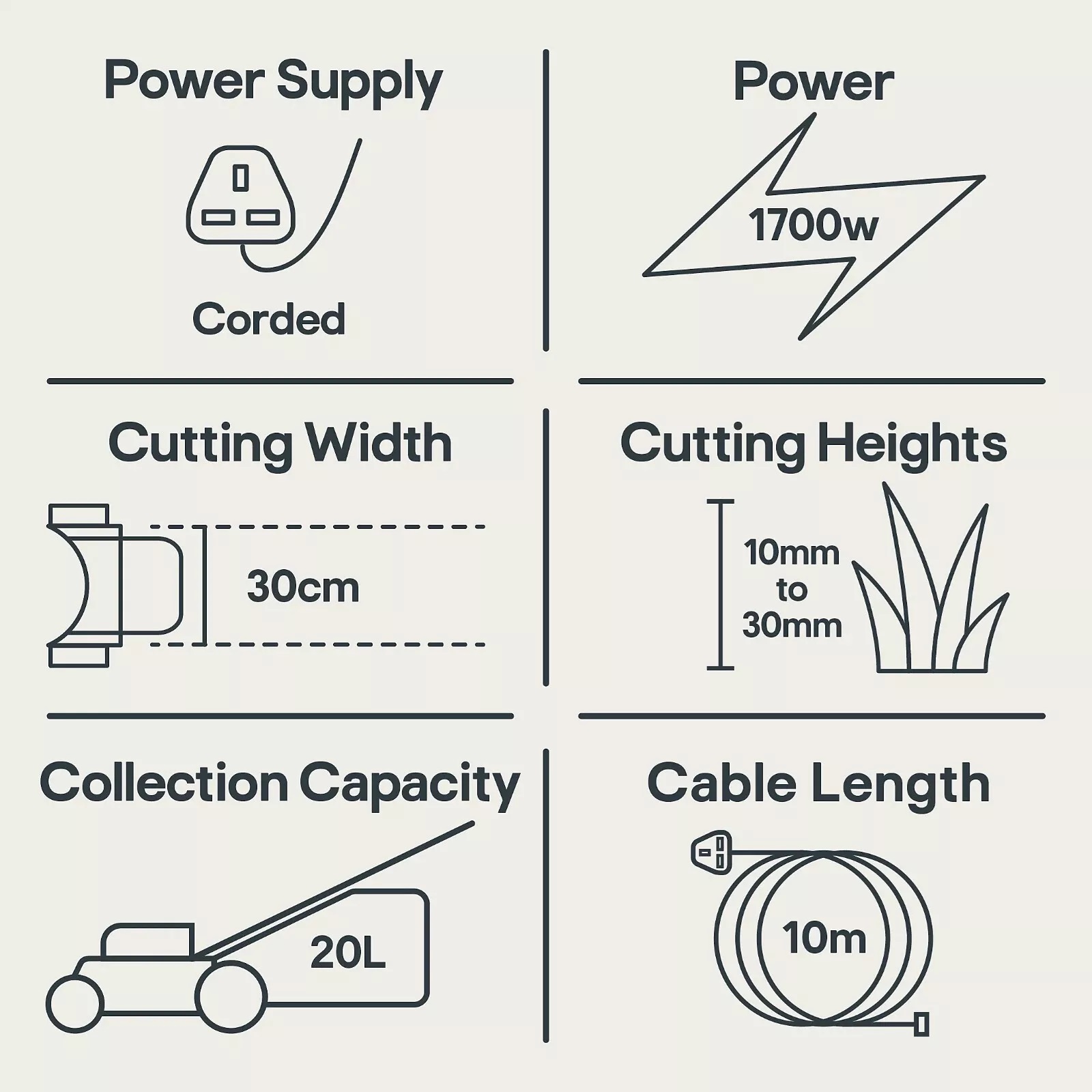 S výkonným 1700W vysoce výkonným motorem a 30cm žacím ústrojím, které dokáže posekat i silnou a hustou trávu, bude váš trávník posekán bez námahy