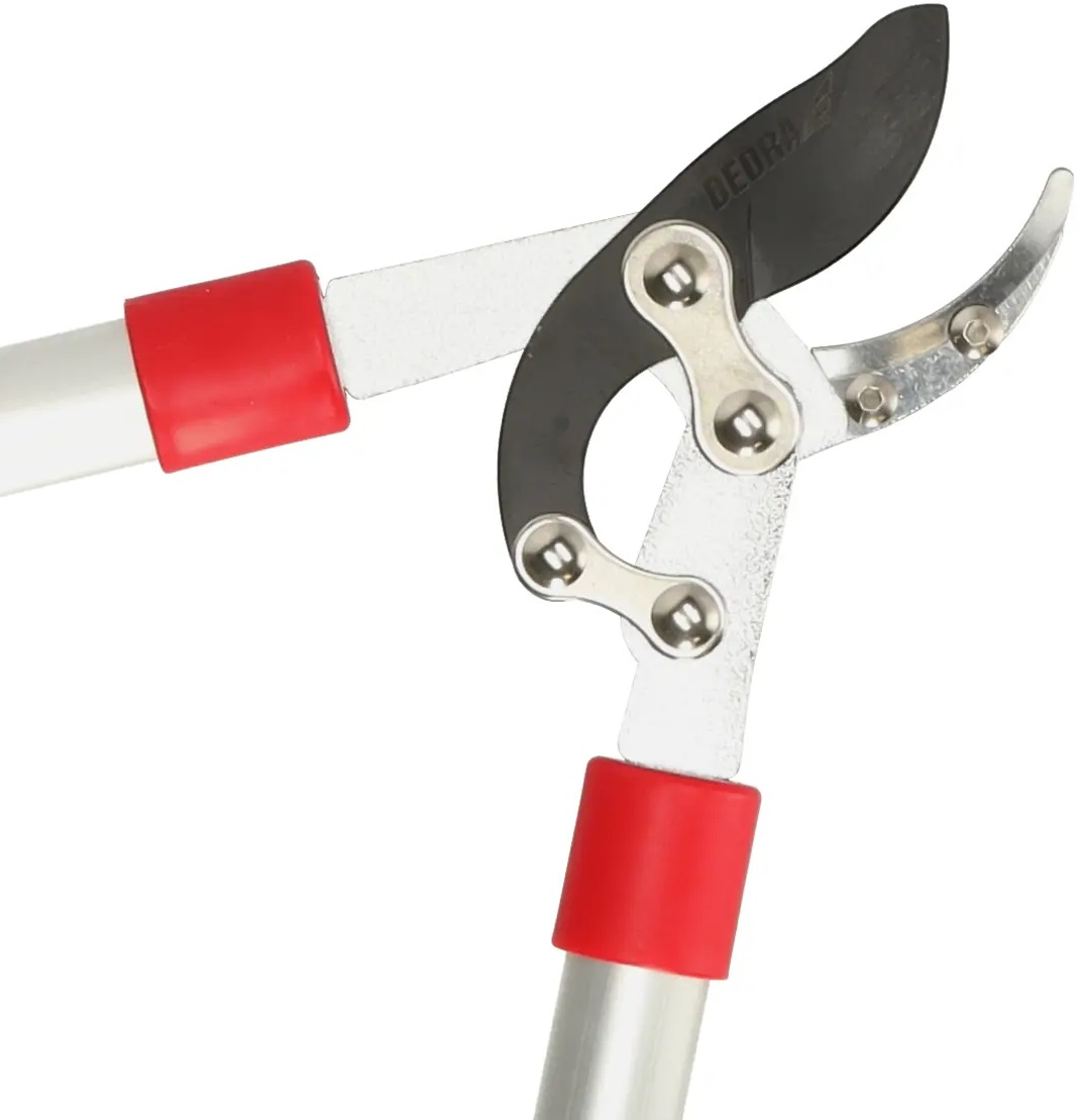 Sadové - zahradnické kovadlinkové nůžky Dedra 80A029 na suché větve do 40 mm s pákovým převodem (vyšší síla), které najdou své uplatnění v ovocnářství nebo domácí zahradě. Zahradnické nůžky jsou určeny k řezání suchých výhonků a větví ovocných stromů i okrasných keřů. Ramena nůžek o délce 670 mm vám umožní dosáhnout výše položených výhonků nebo větví a ušetří vynaloženou sílu pro řez. Čepel z manganové oceli (Mn65) je navíc pokryta teflonovým povlakem, který zabraňuje ulpívání zbytků větví při řezání, snižuje tření při řezu a navíc chrání čepel proti korozi. Zahradnické nůžky mohou díky pákovému převodu bez námahy stříhat suché větve až do průměru 40 mm. Ramena jsou vyrobena z hliníku a mají pohodlnou gumovou rukojeť.