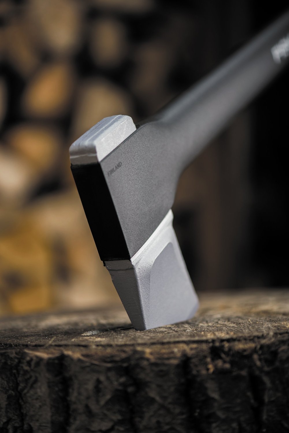Nová geometrie čepele - zaoblené okraje rozšířeného klínu štípacích seker usnadňují vytažení sevřené sekery ze špalku
