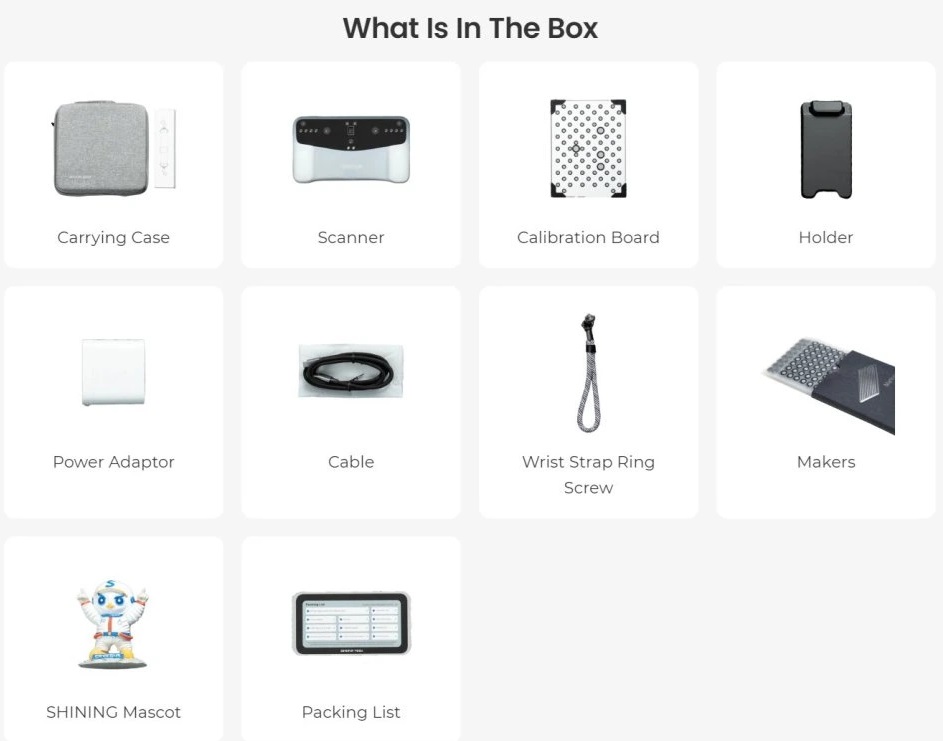 Podporované platformy: pro 3D skenování není potřeba počítač; aplikace StarVision je kompatibilní s Windows 10/11 (64bit.) a macOS; doporučené specifikace PC: Intel i7, 32 GB RAM