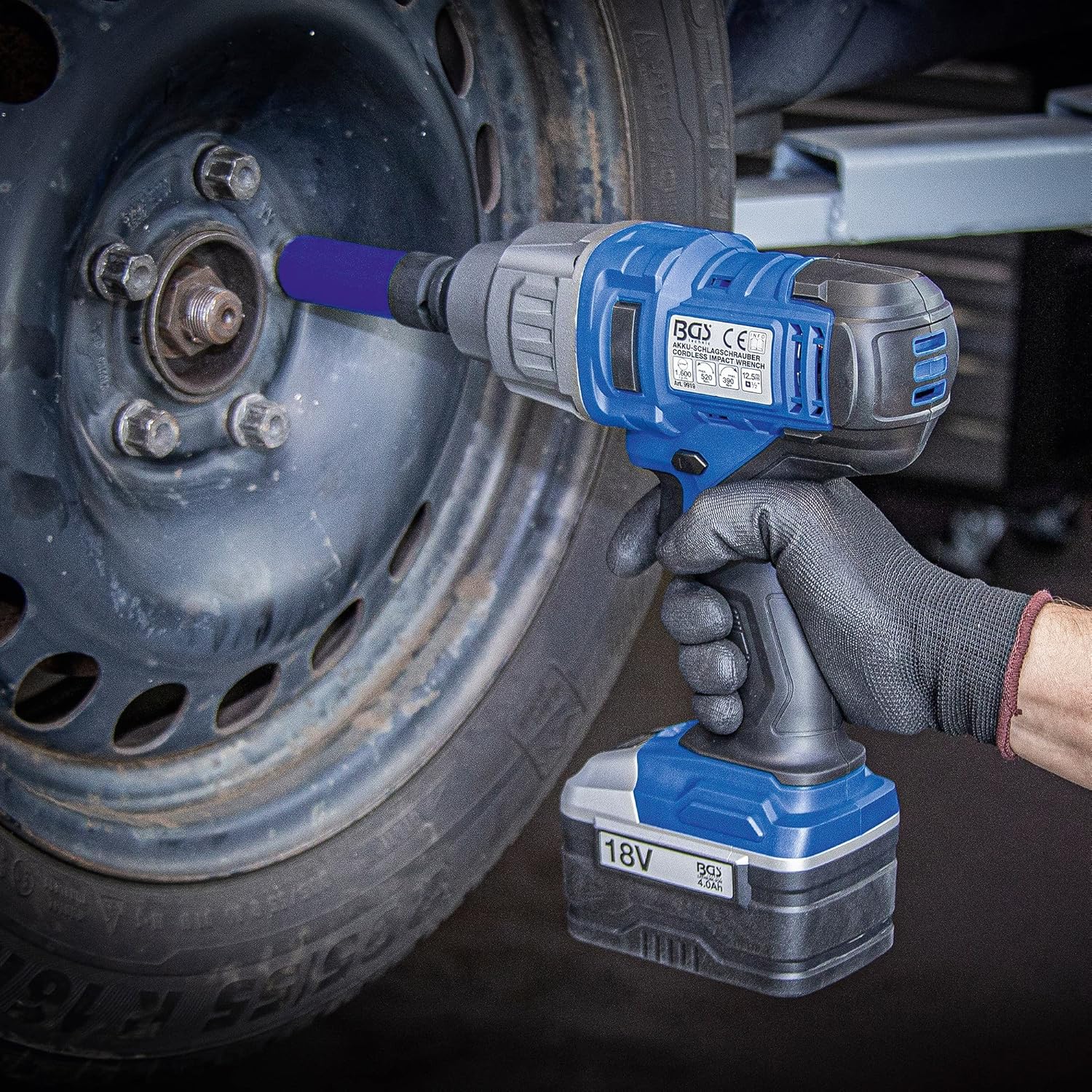 Výkonný akumulátorový rázový utahovák BGS 9919 s točivým momentem až 520 Nm je ideální pro povolování a utahování šroubových spojů, například kolových matic.
