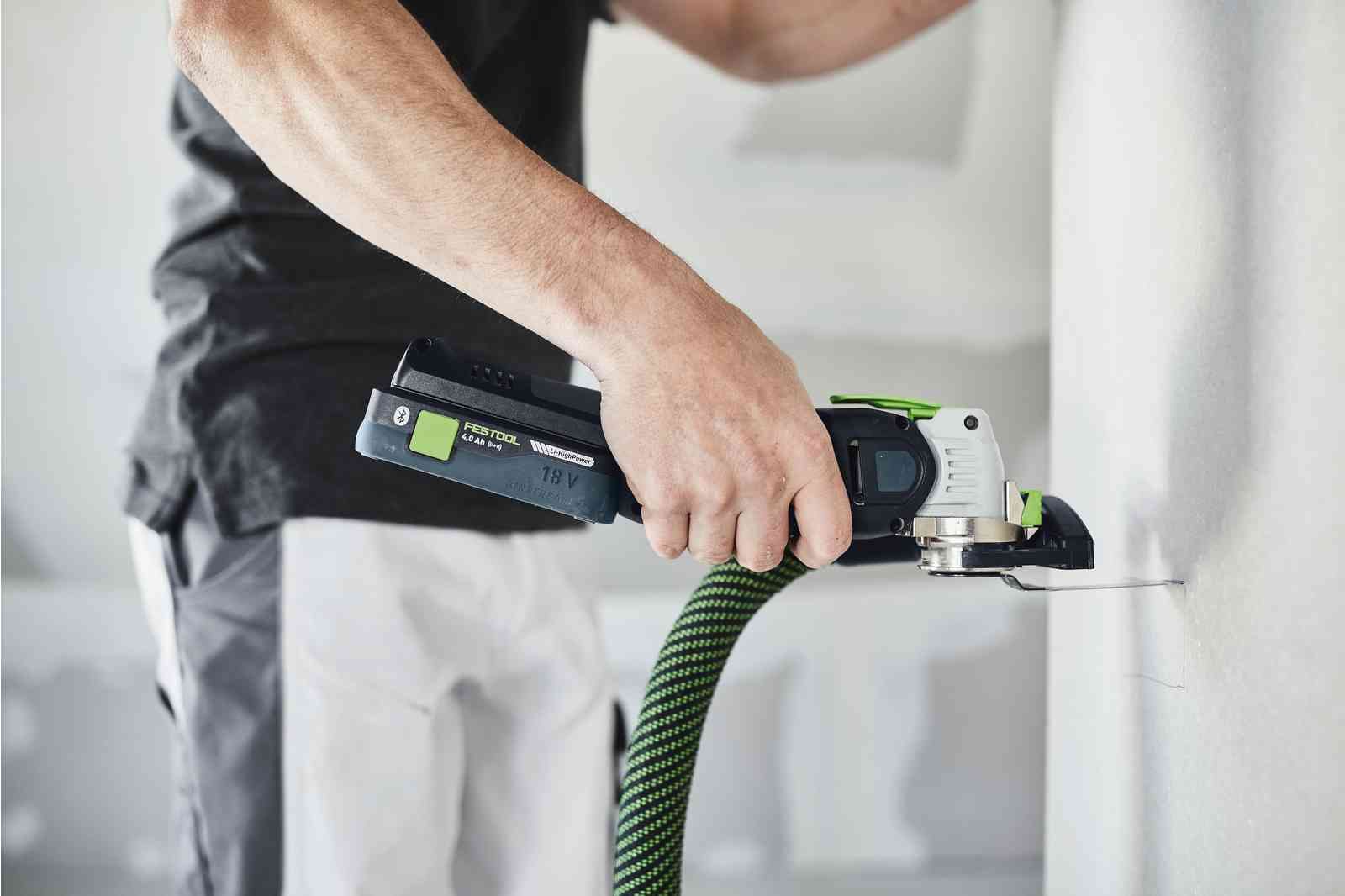 Promyšlené: Volitelné systémové příslušenství umožňuje přesně vedené zanořovací řezy a bezprašné řezání i při práci nad hlavou
