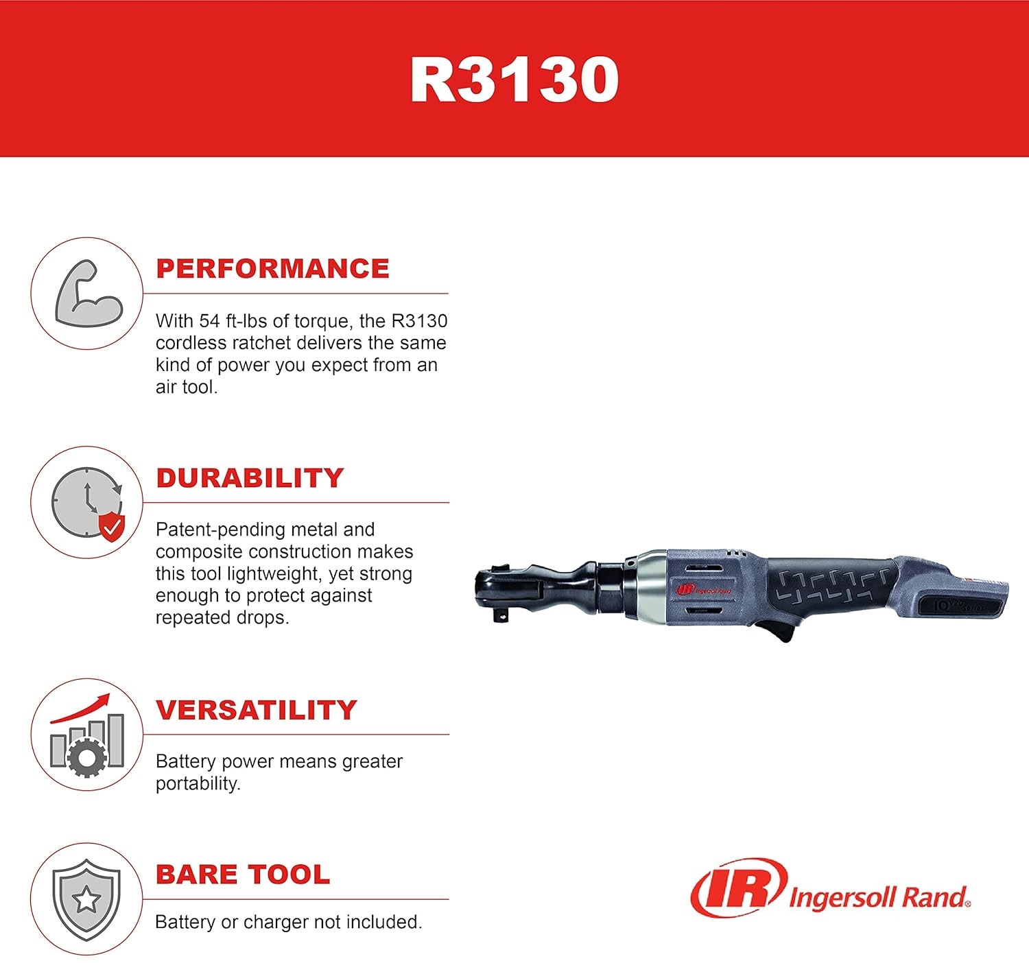 Akumulátorová ráčna Ingersoll Rand R3130 je určena pro široké spektrum servisních aplikací od oprav motorů a práce pod vozidlem až po lehké průmyslové údržbové a MRO práce