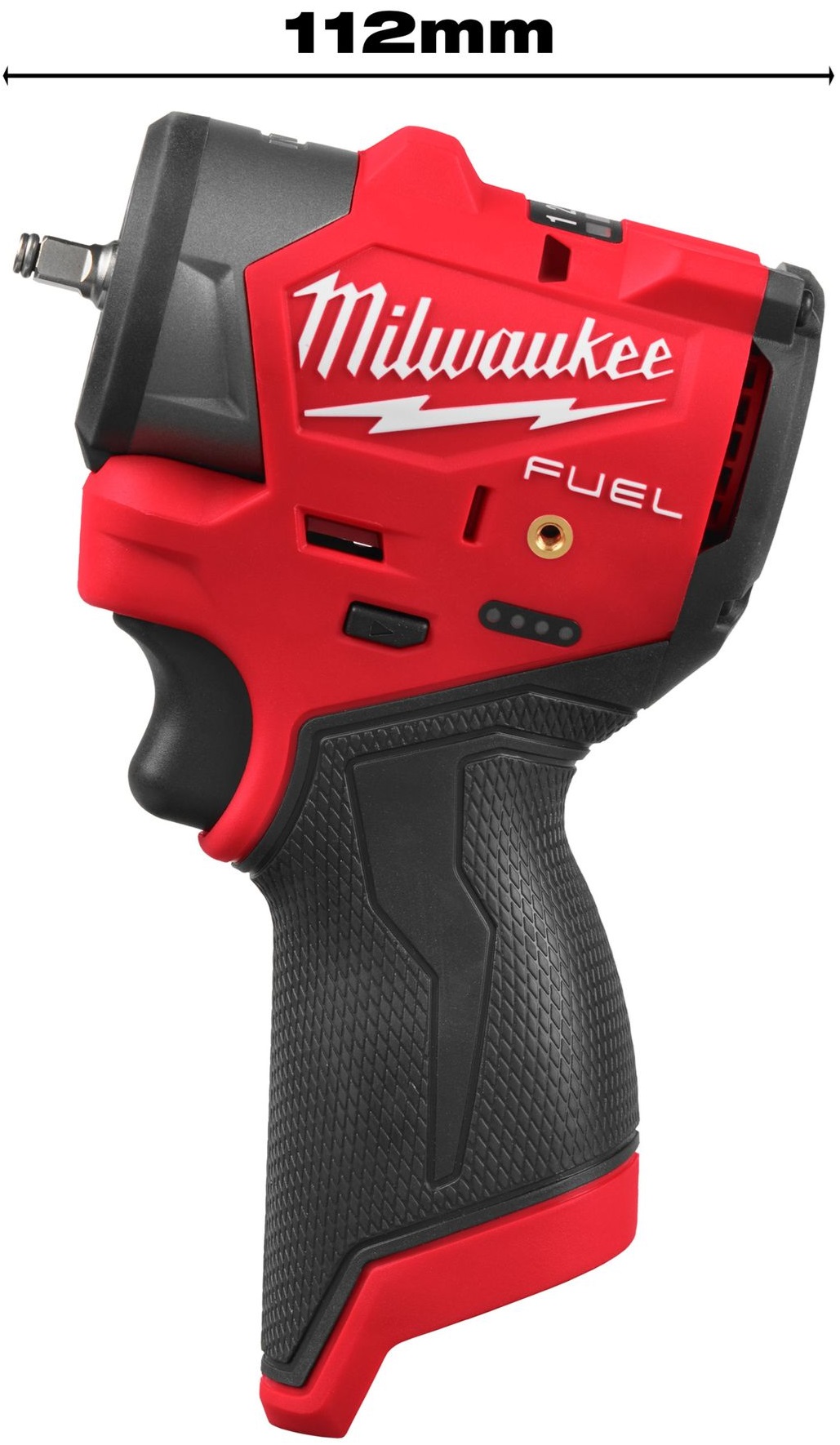Subkompaktní konstrukce – délka 112 mm a hmotnost pouhých 0,86 kg (s aku M12 HB2.5) pro snadný přístup do úzkých prostor