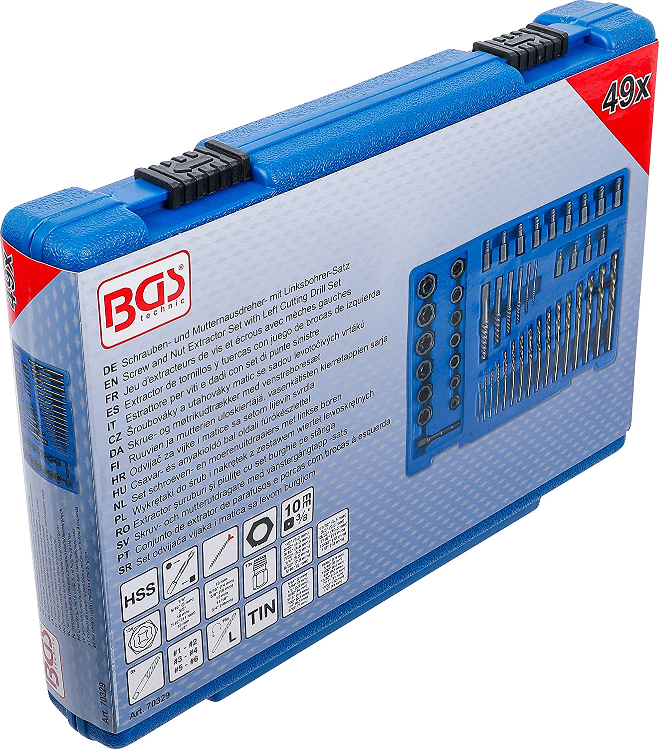 BGS 70329 šroubováky a utahováky matic včetně levotočivých vrtáků 2 - 18 mm, 49 dílů