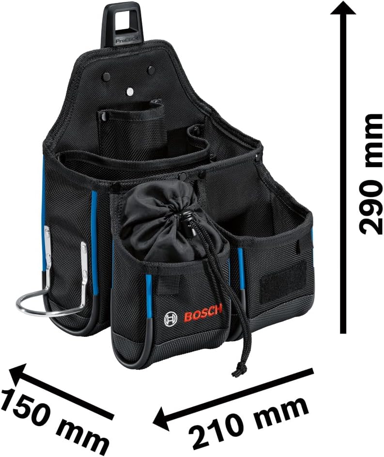 Sada opasků s nářadím ProClick je odolná proti propíchnutí a je vyrobena z lehkého polyesteru 1000D pro maximální odolnost a pohodlnější práci. Systém Bosch Professional ProClick umožňuje snadné připojení, výměnu a úpravu opaskových pouzder ProClick mezi jednotlivými aplikacemi bez nutnosti sundávání opasku.