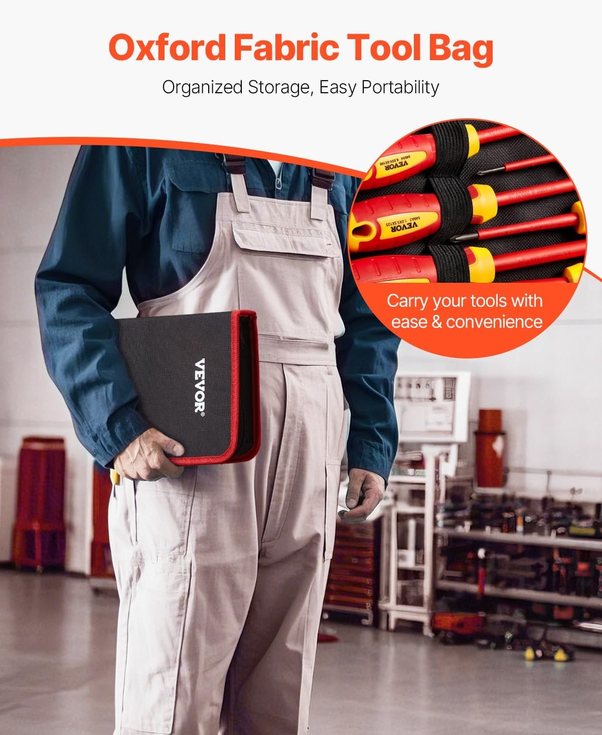VEVOR 12-dílná sada izolovaných šroubováků a kleští VDE, magnetické hroty, taška