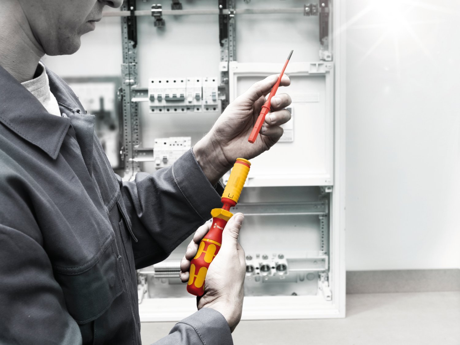 První sada Kraftform VDE 7400 s ručně nastavitelnou rukojetí (1,2 - 3,0 Nm) a s výměnnými čepelemi od společnosti Wera.