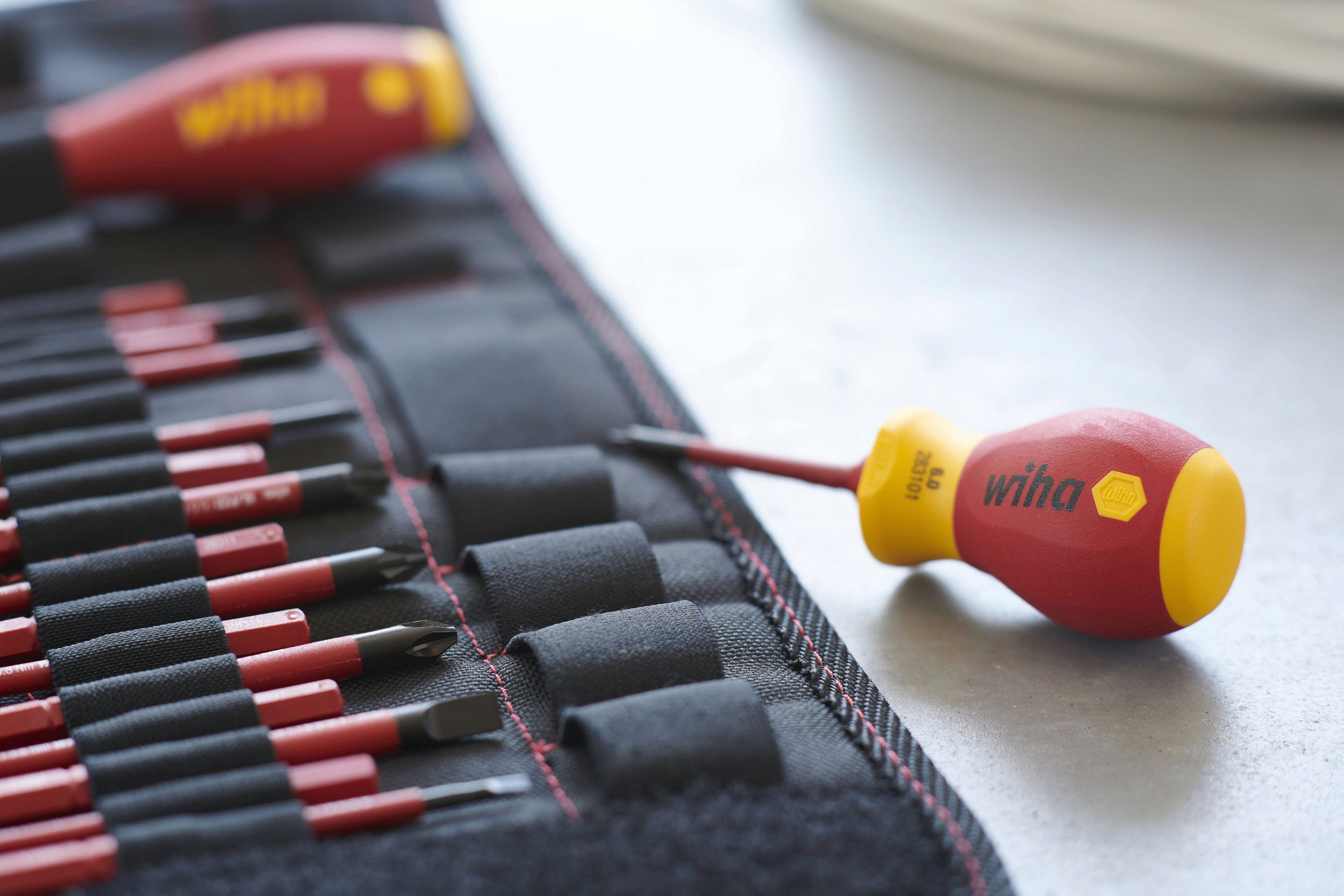 Při práci na různých místech nasazení, např. i na staveništích, solárních zařízeních a rozvodných skříních, je zapotřebí mnoho různých profilů šroubů. Sada šroubováků slimVario® se slimBity pokrývá všechny běžné profily šroubů, a tím ji lze flexibilně používat. Nástroje bezpečně uschované a uspořádané v robustní tašce mají elektromechanici vždy připravené k mobilnímu nasazení. 9dílná sada nástrojů nabízí optimální úsporu místa díky rozsáhlému systému výměnných nástavců. Díky Wiha slimTechnology mohou obsažené slimBity s dříkem štíhlejším až o 33 % bez námahy dosáhnout i hluboko položených šroubovacích a pružinových prvků. V kombinaci s extra krátkou rukojetí Stubby lze šrouby bezproblémově dosáhnout zejména do úzkých míst. Pro hluboko položené šrouby a u většího přenosu síly se používá podélná rukojeť. Každý nástroj v sadě byl podroben kusové zkoušce podle mezinárodní normy IEC 60900 a umožňuje bezpečnou práci v oblasti vodivých dílů do 1 000 V AC.
