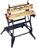 Dvě pracovní výšky umožňují použití jako pracovní stůl, hoblice, stojan na řezání dřeva nebo svěrák