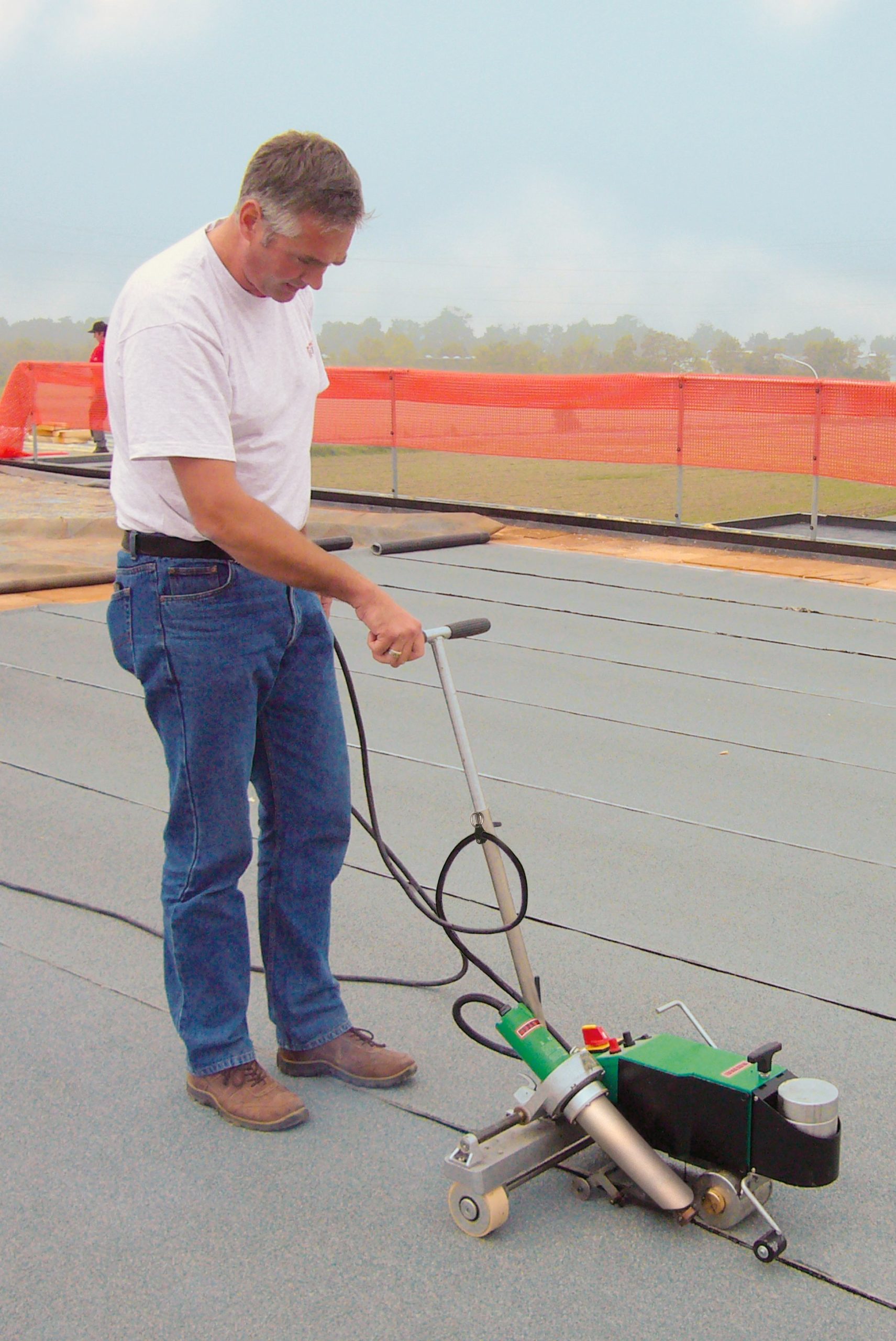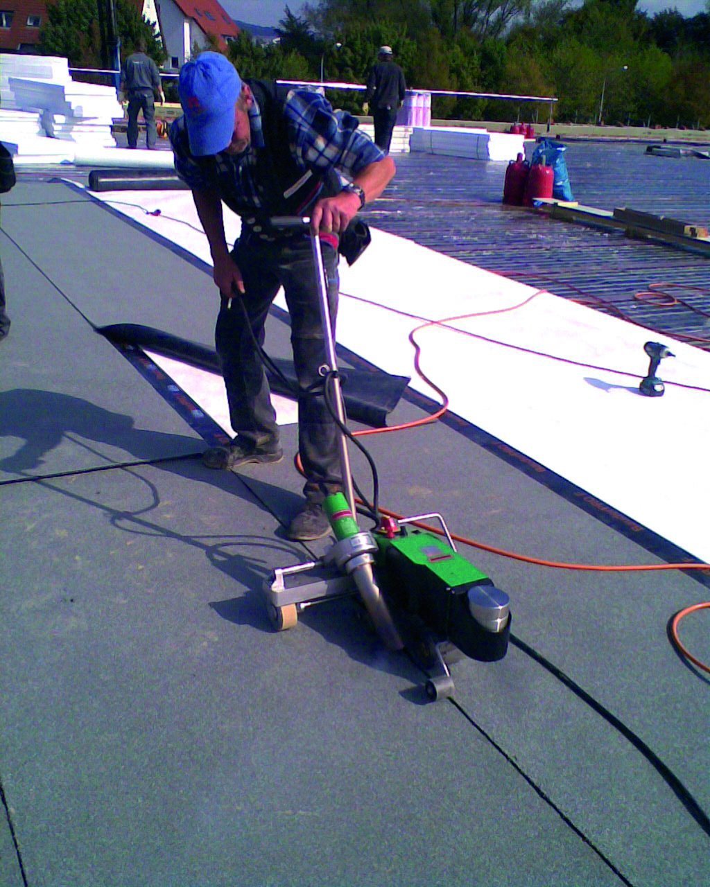 Bezplamenné svařování modifikovaných bitumenových pásů (SBS, PAP) svařovacím automatem Leister BITUMAT B2 je mnohem rychlejší a bezpečnější než svařování plamenem. Sváry jsou podstatně pevnější a svařování hospodárnější.