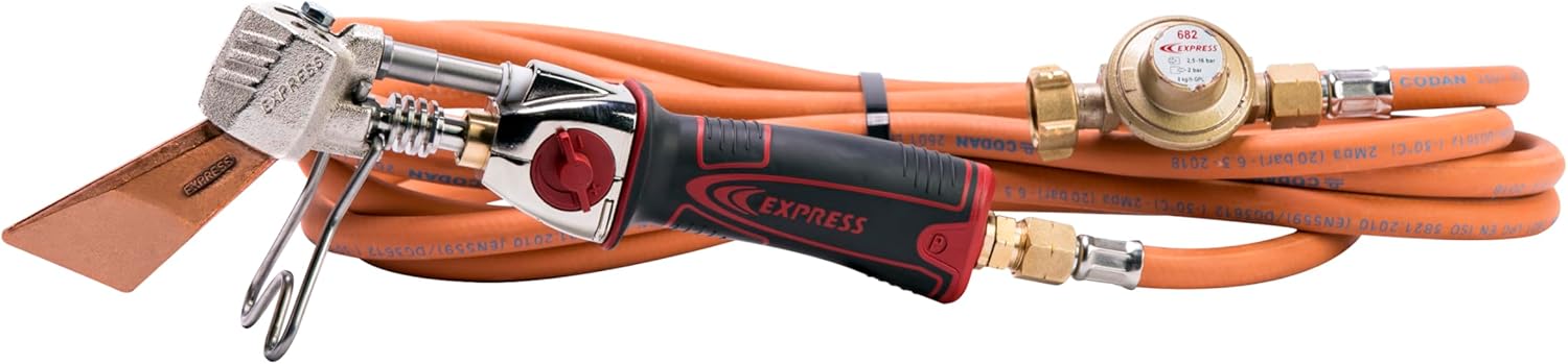 Profesionální plynová pájka Express 367/8 je inovovaný, odlehčený přístroj s automatickým piezoelektrickým zapalováním, určený pro klempířské, pokrývačské a servisní práce. Je vyrobena z odolných materiálů, nabízí vysoký výkon a spolehlivý tichý provoz. Součástí této sady je také 4,75 m plynová hadice a regulační ventil pro přímé připojení na 10kg propan-butanovou láhev.