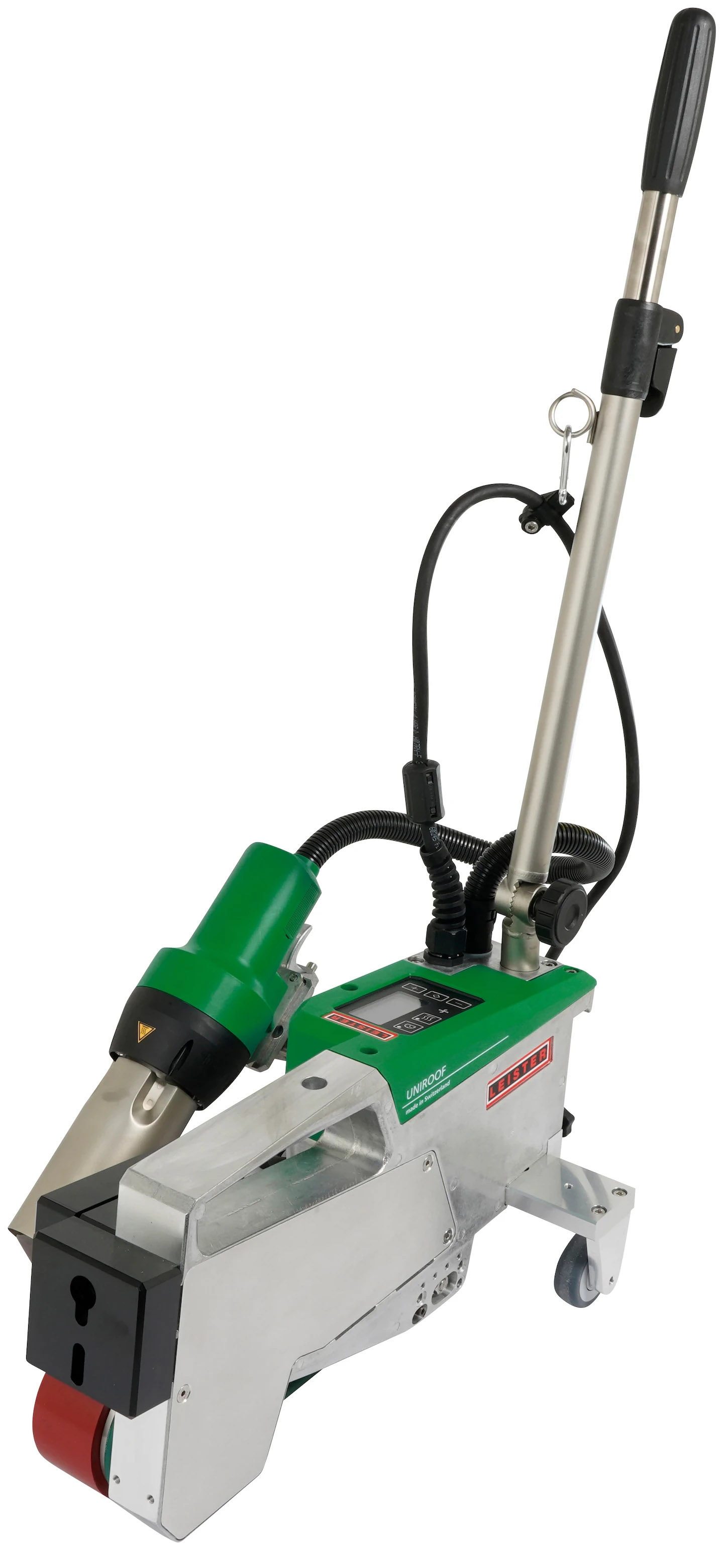Nový kompaktní svařovací automat UNIROOF 300 je vhodný pro svařování středně velkých plochých střech do cca 500 m2, nebo jako doplněk na velkých střechách. S UNIROOF 300 je svařování blízko stěn (až do 100 mm), na atikách nebo v rozích hračkou. Systém s uzavřeným okruhem a digitálním displejem usnadňuje nastavení a sledování parametrů svařování (rychlost, průtok vzduchu, teplota). Inovovaná standardní tryska, která se velmi snadno zakládá, zaručuje optimální šířku svaru a jeho kvalitu v celé délce. Díky jednoduché obsluze a skvělému poměru cena-výkon je ideální jako základní přístroj i pro začátečníky