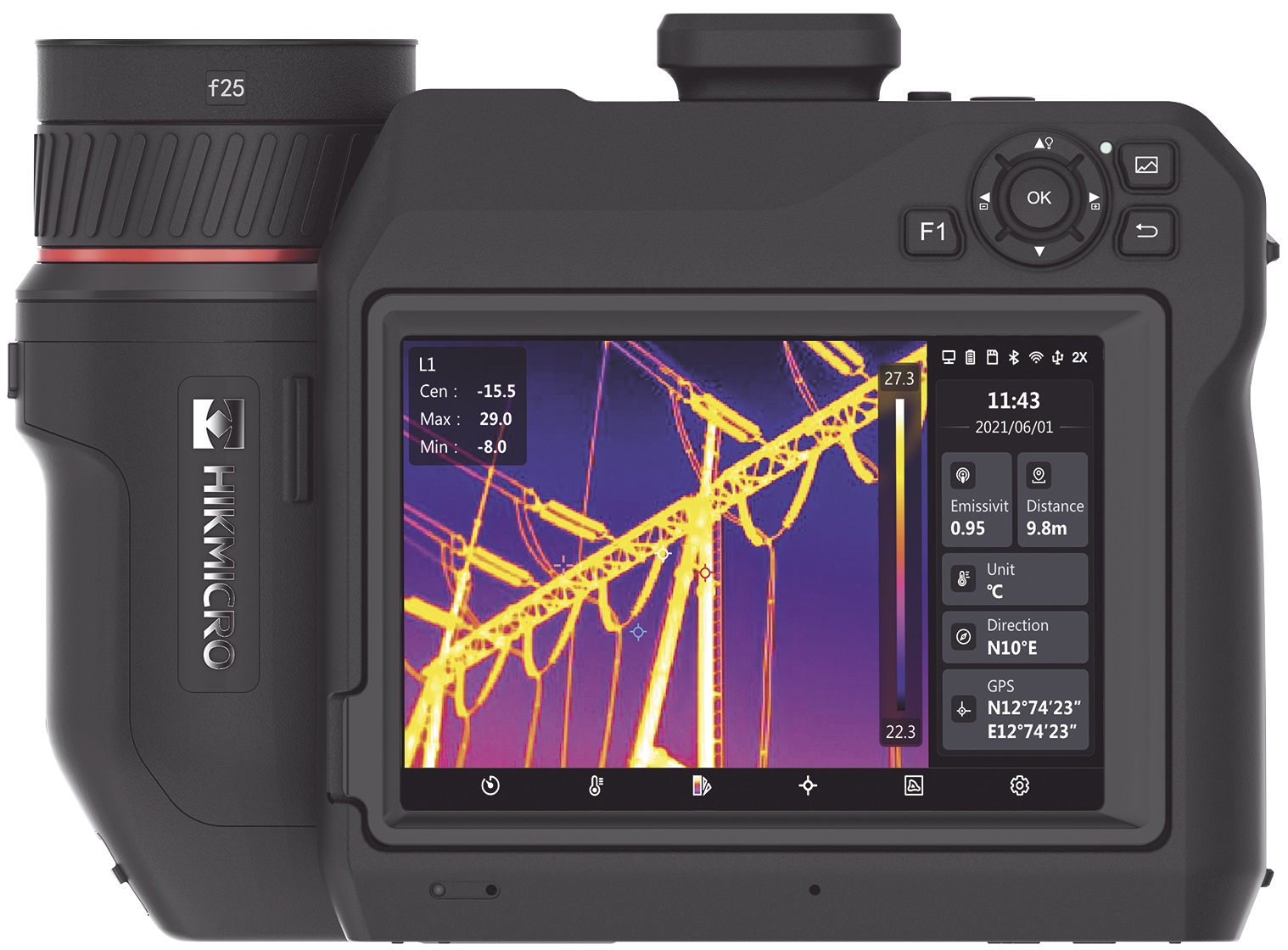 Kamera je osazena infračerveným (25 Hz) i viditelným (8 Mpix) snímačem umožňujícím prolínání obou spekter, manuálním, automatickým i laserovým ostřením pro vždy ostré snímky nebo dotykovým displejem pro snadné ovládání. Ke kamerám lze připojit dodatečné objektivy (širokoúhlé i teleobjektivy) pro rozšíření oblasti použití. Doplňkové funkce umožňují přesné popsání snímku a vedle statických snímků lze pořizovat i videa. Výměnný akumulátor Li-ion umožňuje až 4 h provozu.