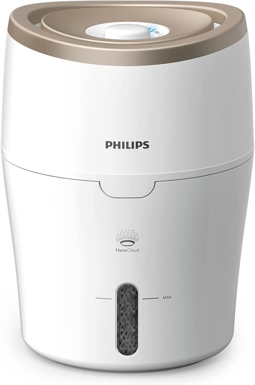 Zvlhčovač Philips HU4811/10 zajišťuje příjemnou úroveň vlhkosti ve vašich vlastních čtyřech stěnách a usnadňuje tak dýchání. Díky technologii NanoCloud je použit zcela přirozený proces odpařování, při kterém je suchý vzduch nasáván dovnitř, poté obohacen o molekuly vody a opět vytlačen. Rozšiřte o 99,9 % méně bakterií ve srovnání s předními zvlhčovači. Technologie zvukových vln navíc zabraňuje bílému prachu a mokrým skvrnám. Režim tichého spánku také umožňuje nepřetržité používání během noci.