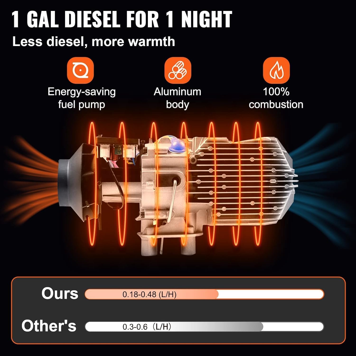 VEVOR 12 V dieselové nezávislé topení, 8 kW dieselové topení, 0,18-0,48 l pro auta, lodě, nákladní auto, obytný autobus s tlumičem (1 výstup vzduchu)
