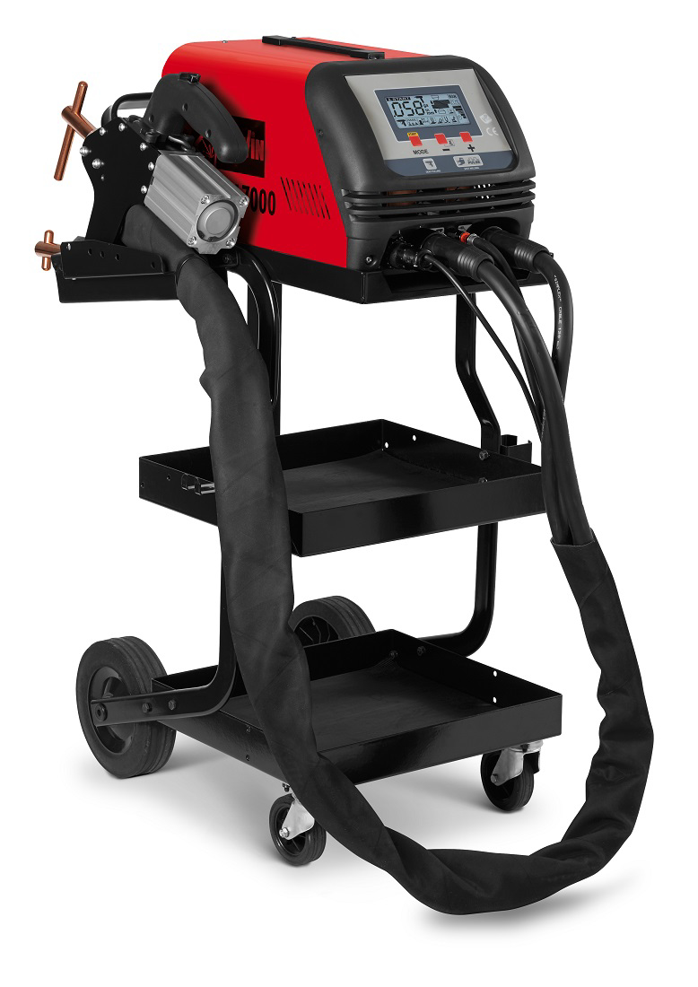 Elektronická mikroprocesorová multifunkční bodovací svářečka Telwin Digital Spotter 7000 s pulsním a stejnosměrným režimem. Jednostranné a oboustranné bodování, žíhání plechů, bodování šroubů, nýtů, hřebíků, podložek, kontaktů apod. Bodovací kleště ovládané a chlazené vzduchem.