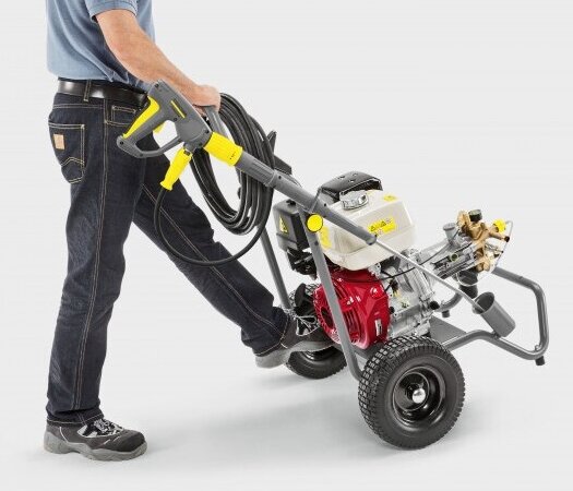 S tlakem 150 barů zaručuje HD 7/15 G z řady Gasoline Advanced nejlepší výsledky čištění za všech okolností. Vysokotlaký čistič na studenou vodu poháněný benzinem je vybaven benzinovým motorem Honda, který umožňuje naprostou nezávislost na externích zdrojích energie. Kromě toho je stroj schopen nasávat vodu z jezer nebo rybníků a používat jej k čištění. S vysokotlakou pistolí EASY! Force, která využívá zpětnou sílu vysokotlakého paprsku ke snížení přidržovací síly pro obsluhu na nulu, jakož i rychloupínací uzávěry EASY! Lock, které umožňují nastavení Po rozebrání a demontáži pětkrát rychleji než u konvenčních šroubových spojů je stroj velmi pohodlný. Stroj je navržen pro použití v nejnáročnějších podmínkách, má extrémně robustní základní rám a díky ergonomické koncepci rámu je překvapivě mobilní. Čerpadlo je spolehlivě chráněno velkým vodním filtrem a termostatickým ventilem. Jako volitelný doplněk je k dispozici také rám klece s očky umožňující nakládání jeřábu nebo sada příslušenství pro naviják hadice.