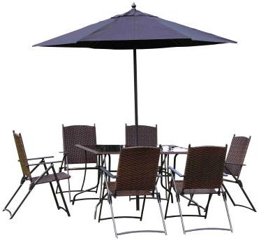 6 ks židlí, slunečník o průměru 240 cm, černý