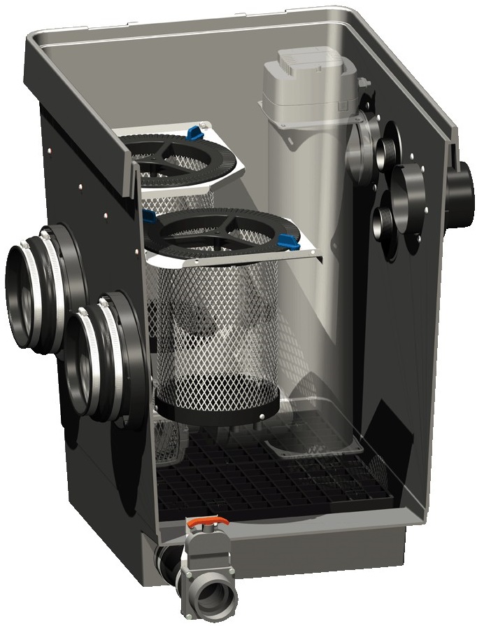 V případě gravitačního zapojení pak slouží komora pro zapojení čerpadla a případně i speciální UV lampy  Bitron Gravity