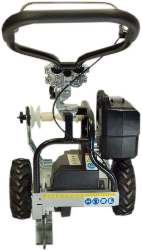 Jeho ergonomická, nastavitelná a do stran otočná vícepolohová rukojeť umožňuje uživateli instalovat kabel pod živé ploty, keře a nízké větve! Vysokou jednoduchost ovládání završuje trakční pohon, poháněný elektromotorem o výkonu 1 kW pro lithium-iontové baterie 80/82V