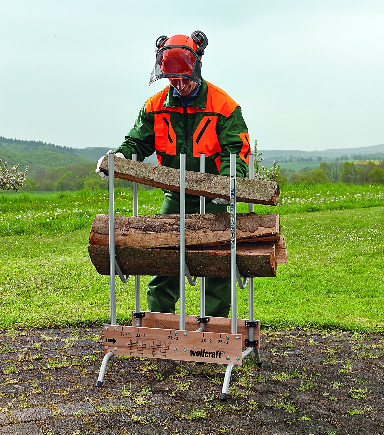 Označení panelů kozy pro možnost řezání polen s délkou 25, 50 a 75 cm nebo 33 a 66 cm