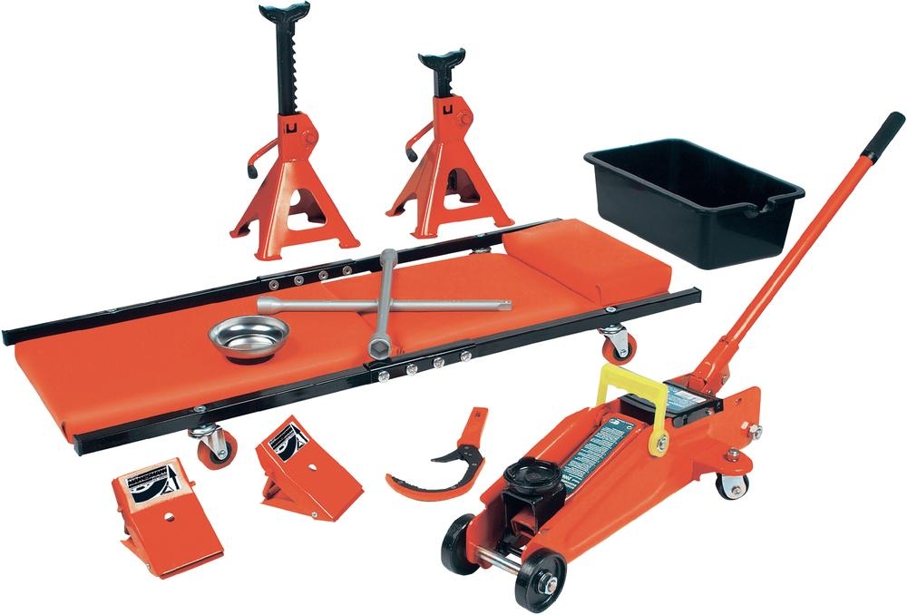 Sada pro autodílnu 10 ks - zvedák 2t, podpěry, montážní lehátko